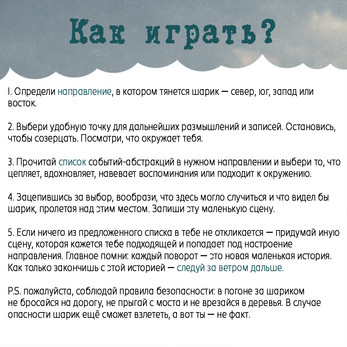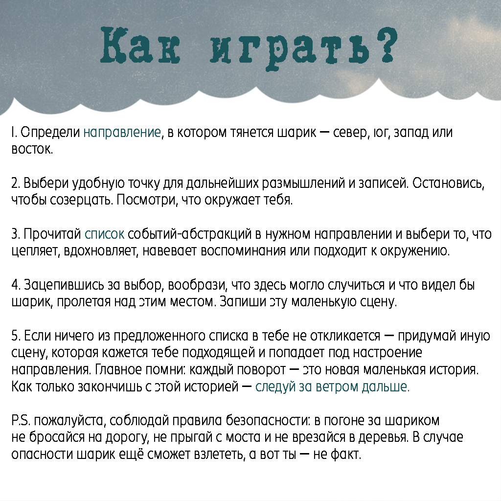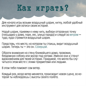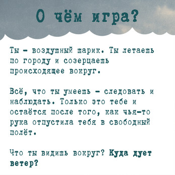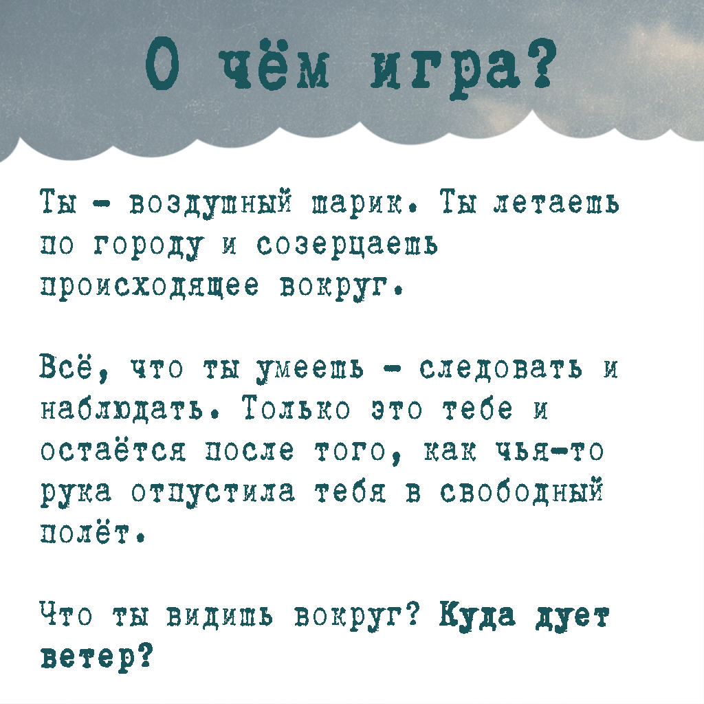 Ты — воздушный шарик. Ты летаешь по городу и созерцаешь происходящее вокруг.